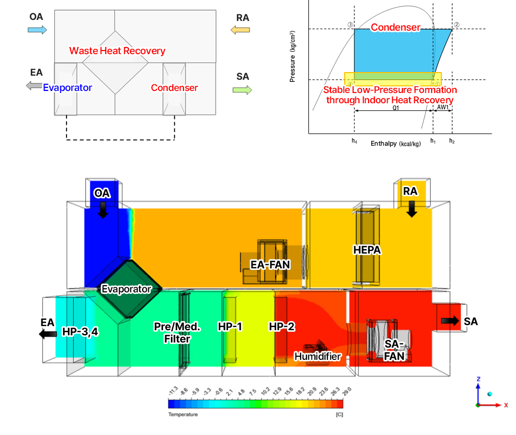 → Maximized heat pump performance by recovering indoor waste heat to